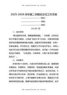 2026年春季学期班主任工作计划(文稿版).doc