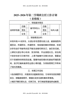 2026年春季学期班主任工作计划(表格版).docx