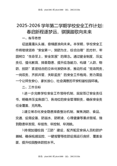 2025-2026学年第二学期学校安全工作计划:春启新程逐梦远,骐骥踏歌向未来.docx