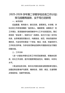 2025-2026学年第二学期学校总务工作计划:策马扬鞭再奋蹄,实干笃行启新程.docx