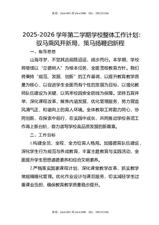 2025-2026学年第二学期学校整体工作计划:驭马乘风开新局,策马扬鞭启新程.docx