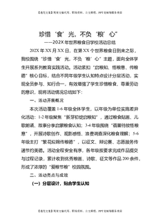 珍惜‘食’光,不负‘粮’心”202X年世界粮食日学校活动总结.doc