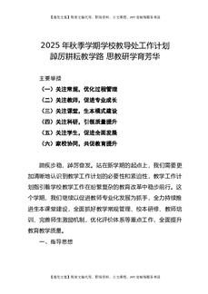 2025年秋季第一学期学校教导处工作计划:踔厉耕耘教学路,思教研学育芳华(文稿).docx