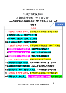 2026.3.11(写作模板)(在指导下级党组织领导班子2025年度民主生活会上的点评讲话)当好党性党风标杆 写好民主生活会“后半篇文章”