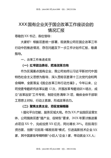 XXX国有企业关于国企改革工作座谈会的情况汇报.docx