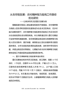 从生存到发展:农村精神智力助残工作路径优化研究——以株洲市天元区雷打石镇为例.docx