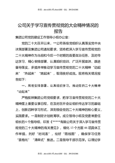 公司关于学习宣传贯彻党的大会精神情况的报告.docx