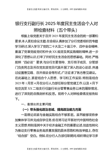 银行支行副行长2025年度民主生活会个人对照检查材料(五个带头).docx