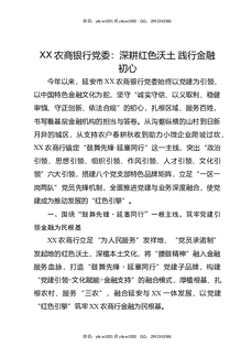 XX农商银行党委:深耕红色沃土,践行金融初心.docx