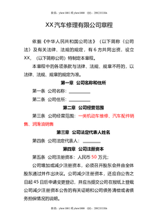 XX汽车修理有限公司章程.doc