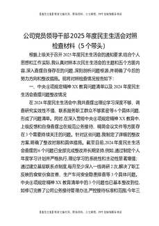 公司党员领导干部2025年度民主生活会对照检查材料(5个带头).docx
