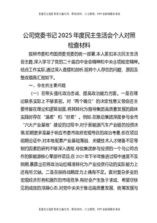 公司党委书记2025年度民主生活会个人对照检查材料.docx
