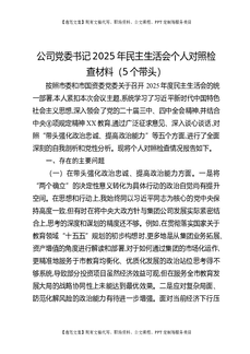 公司党委书记2025年民主生活会个人对照检查材料(5个带头).docx