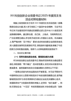 XX科技创新企业党委书记2025年度民主生活会对照检查材料.docx