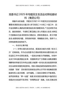 党委书记2025年专题民主生活会对照检查材料(集团公司).docx