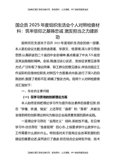 国企党员2025年度组织生活会个人对照检查材料:筑牢信仰之基铸忠诚,激发担当之力建新功.docx