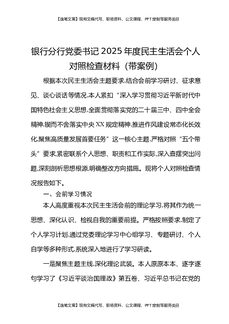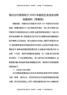 银行分行领导班子2025年度民主生活会对照检查材料(带案例).docx
