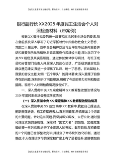银行副行长XX2025年度民主生活会个人对照检查材料(带案例).docx