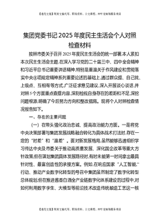 集团党委书记2025年度民主生活会个人对照检查材料.docx