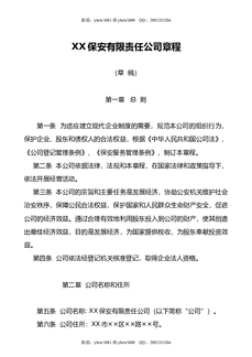 XX保安服务有限责任公司章程(草稿).doc