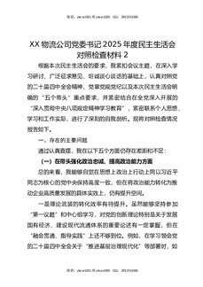 XX物流公司党委书记2025年度民主生活会对照检查材料2.docx