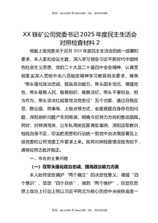 XX铁矿公司党委书记2025年度民主生活会对照检查材料2.docx