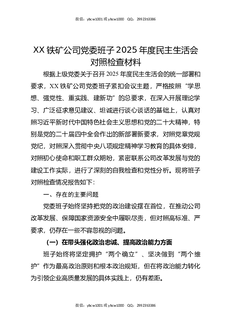 XX铁矿公司党委班子2025年度民主生活会对照检查材料.docx