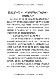 国企党委书记2025年度意识形态工作责任制落实情况报告.docx