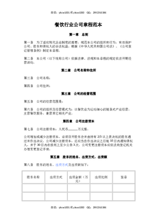 餐饮行业公司章程范本.doc
