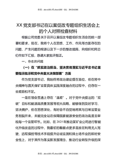 XX党支部书记在以案促改专题组织生活会上的个人对照检查材料.docx