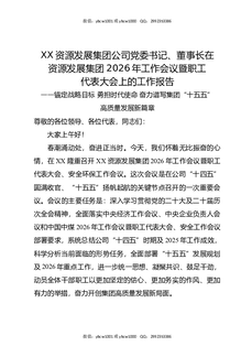XX资源发展集团公司党委书记,董事长在资源发展集团2026年工作会议暨职工代表大会上的工作报告.docx