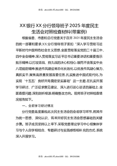 XX银行XX分行领导班子2025年度民主生活会对照检查材料(带案例).docx