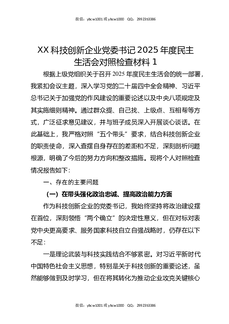 XX科技创新企业党委书记2025年度民主生活会对照检查材料1.docx