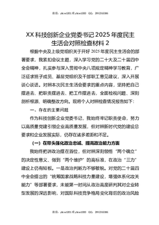 XX科技创新企业党委书记2025年度民主生活会对照检查材料2.docx
