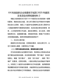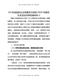 XX科技创新企业党委班子成员2025年度民主生活会对照检查材料2.docx