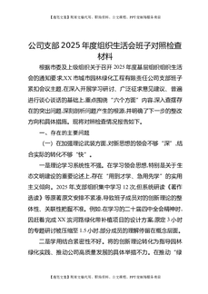 公司党支部2025年度组织生活会班子对照检查材料.docx