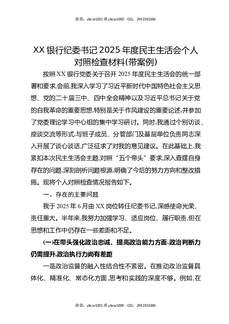 XX银行纪委书记2025年度民主生活会个人对照检查材料(带案例).docx