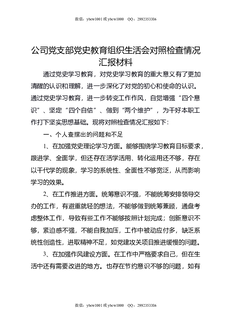 公司党支部党史教育组织生活会对照检查情况汇报材料.docx