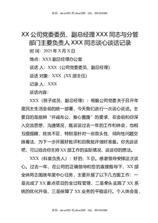 XX公司党委委员,副总经理XXX同志与分管部门主要负责人XXX同志谈心谈话记录.docx
