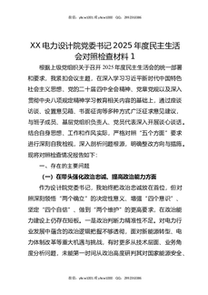 XX电力设计院党委书记2025年度民主生活会对照检查材料1.docx