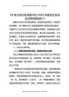 XX电力设计院党委书记2025年度民主生活会对照检查材料2.docx