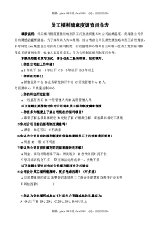 员工福利满意度调查问卷表.doc