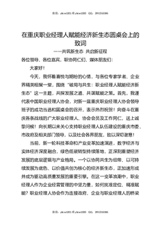 在重庆职业经理人赋能经济新生态圆桌会上的致词.docx