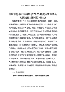 园区服务中心领导班子2025年度民主生活会对照检查材料(五个带头).docx