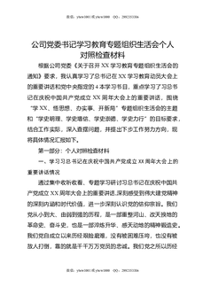 公司党委书记XX教育专题组织生活会个人对照检查材料.docx