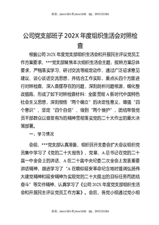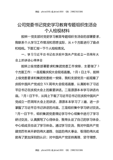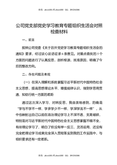 公司党支部党史XX教育专题组织生活会对照检查材料.docx