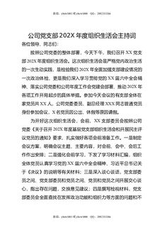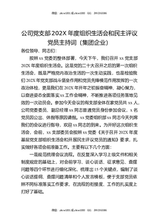 公司党支部202X年度组织生活会和民主评议党员主持词(集团企业).docx
