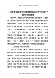 公司党支部党史XX教育专题组织生活会班子对照检查材料.docx