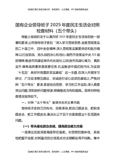 国有企业领导班子2025年度民主生活会对照检查材料(五个带头).docx