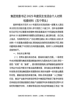 集团党委书记2025年度民主生活会个人对照检查材料(五个带头).docx